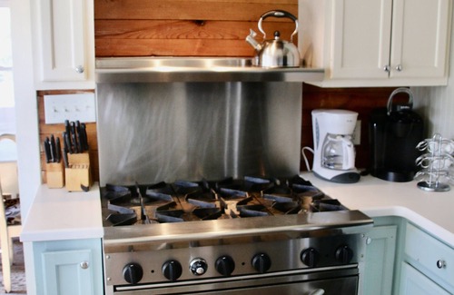 Outdoors includes an outdoor shower with hot & cold water, picnic table, gas grill, fire pit w/ 10 Adirondack chairs and string lights, tire swings, swing, and two 2-person kayaks with 4 adult life jackets. Bring your own children’s life jackets; life jackets are required when using the kayaks.