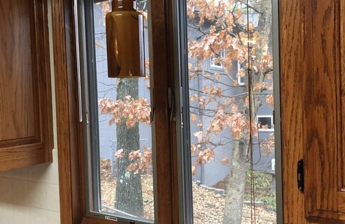 Secluded in the forest and nestled in a quiet neighborhood, this beautiful two-level vacation paradise has restful vistas, lots of outdoor space, boat dock on a placid lake, and access to the best mountain bike trails in the country! With four comfortable bedrooms plus an office with a convertible day bed; 3.5 baths; efficient and equipped kitchen & dining room, both with eating areas; extensive deck areas; pine shiplap ceilings, two fireplaces, laundry facilities, and an appealingly open floor plan but still private spaces when needed; this vacation space is everything you’re looking for! Located in the heart of the Back 40 Bike Trails, there are mountain biking trails all around. Bikes are safe in the enclosed garage when not in use. Swim when it's hot in the man-made lake, then play games, solve world problems, or just relax at the deck table with your compatriots, or around the firepit below on the ground level. Spend the evening - or early morning, or any time of day - enjoying the views of the lake, the wildlife, and the feeling of being lost in nature.