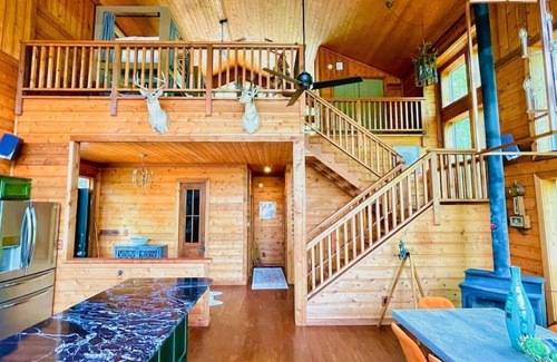 You have to see the amazing custom built Queen sized bunk beds in the loft. They each include curtains for privacy and a reading light. Perfect for a girls weekend.