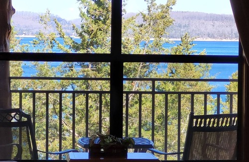 Large jacuzzi for two in a beautifully tiled bathroom, fireplace, full-fully equipped kitchen with brand new tiled floor, large, covered deck, and BBQ grill. Enjoy your own private cabin just steps from the water's edge in a peaceful lakeside setting with all the comforts of home. Enjoy Wi-fi, SAT tv, DVD, CD player with free video library (at our office), ac/heat, and coin op laundry on site. In Room Services available: One hour in room Couples Massage, flowers, chocolates etc. Children welcome! Sorry no pets! Need more room? See the Two-Story listing of this cabin VRBO number 411101