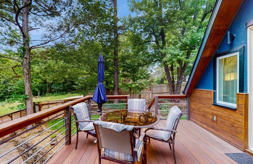 Welcome to The Blue Beaver Cottage, a charming and dog-friendly retreat nestled in Rogers, AR, just moments away from Prairie Creek and the Hwy 112 Boat Ramp. This delightful home offers accommodating boat parking on-site, making it the perfect getaway for outdoor enthusiasts. With two private decks, you can immerse yourself in the serene sounds of nature while enjoying the beautiful scenery that surrounds you.