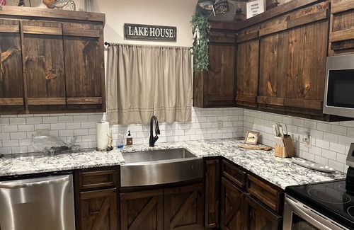 The Lake House isn’t just for fisherman! Although, it is lake front on an exceptional bass and crappie lake! While there isn’t a dock or boat launch area in the back yard just yet, the nearest boat launch is only a quarter of a mile away! We can also set you up with a guided fishing trip! Message us for more info!