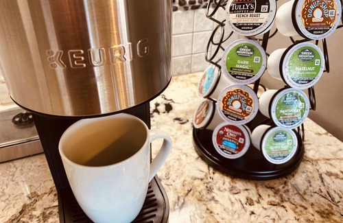 Serenity at the Lake comes equipped with a fully stocked kitchen for those who like to cook (like I do!). Affordable luxury at its best!