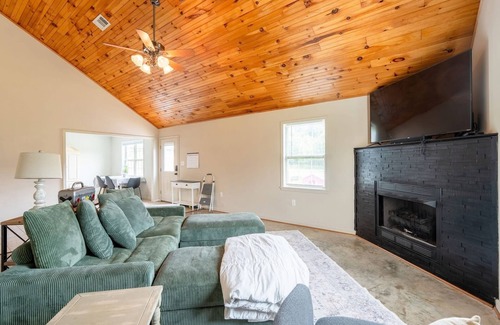 This Pangburn house boasts 3 inviting bedrooms with a king bed, full bed, and 2–twin beds. With 3 bathrooms, including a jetted bathtub, guests can relax in style. The living room offers additional space with a cozy sofa bed. Outside you will find two hammock swings on the front porch— and a patio couch out back as well as a fire pit AND a propane grill with all necessary essentials to go along with it!