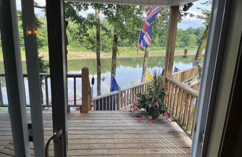 The treehouse has a master bedroom with a queen bed and there is a full size murphy bed in the living area. The bathroom has a jacuzzi tub and a separate walk-in shower. Walk down the steps to the Ouachita River. Kayaks and canoes are available.